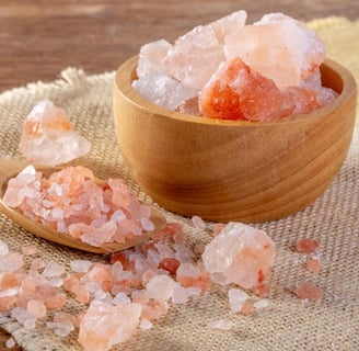 Mined from the Himalayas, it has a pink hue due to trace minerals; known for purity and health benefits.